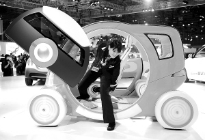| 十一月三十日,工作人员在东京国际车展上介绍铃木的Q-Concept概念车。 新华社/法新 |
