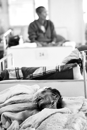 | 在足泉寺的晚期艾滋病患者病房,一名艾滋病患者躺在床上。 新华社发 |