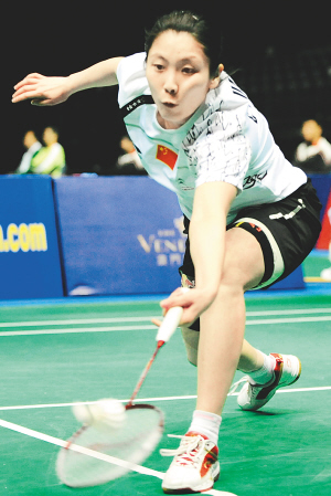 11月30日,中国队选手蒋燕皎在澳门羽毛球黄金大奖赛女单比赛中,以2:1战胜泰国选手沙西丽,晋级下一轮。 新华社发