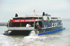 11月30日,搭载507名乘客的“海峡号”穿浪型高速客滚船从福建平潭综合实验区首航台湾台中,开通闽台间海上客滚运输第二通道。