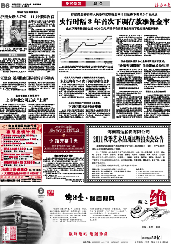 海南日报 财经新闻综合 014 2011-12-011 2011年12月01日 星期四