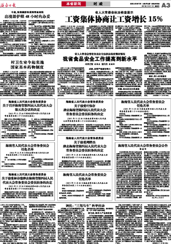 海南日报 本省新闻时政 003 2011-12-011 2011年12月01日 星期四