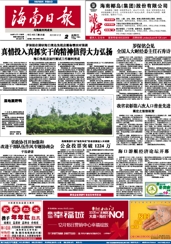 海南日报 头版 001 2011-12-021 2011年12月02日 星期五