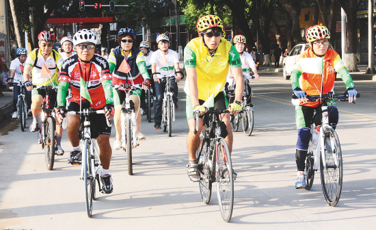 12月2日上午,五指山市开展文明大行动活动周。图为该市自行车协会会员以骑行的方式宣传文明行为。 特约记者 尹秋艳 摄