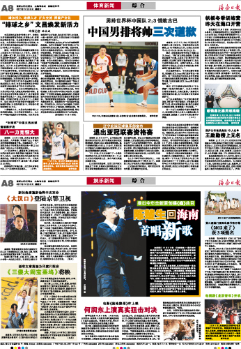 海南日报 体育新闻/娱乐新闻 008 2011-12-031 2011年12月03日 星期六