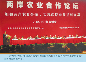 国共两党共同举办的“两岸农业合作论坛”于2006年10月在博鳌举行