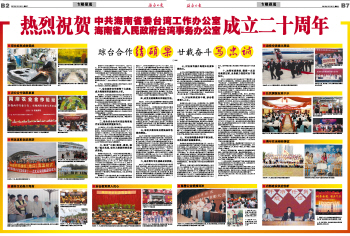 热烈祝贺中共海南省委台湾工作办公室海南省人民政府台湾事务办公室成立二十周年