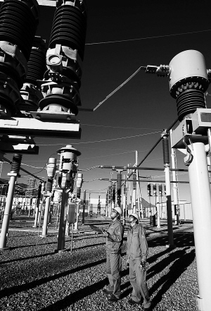 12月9日,两名电力工人在青藏联网工程±400千伏拉萨换流站巡视设备。 当日,青藏交直流联网工程投入试运行,使西藏电网和西北主网实现联网,优化西藏电源结构,提高电力供给能力,以从根本上解决长期制约西藏发展的缺电问题。 新华社发