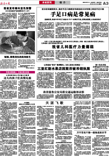 海南日报 本省新闻 003 2011-12-101 2011年12月10日 星期六