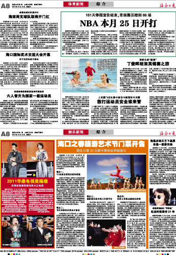 海南日报 体育新闻/娱乐新闻 008 2011-12-101 2011年12月10日 星期六