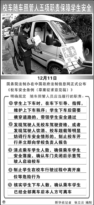 如何有效防止超载?草案规定,随车照管人员发现校车超载等明显妨碍行车安全情形的,制止校车开行并立即向学校负责人报告。