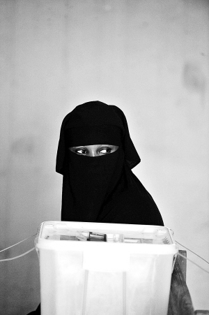 12月11日,一名女子在科特迪瓦北部城市布瓦凯的投票站准备投票。 当天,科特迪瓦举行议会选举。 新华社/法新