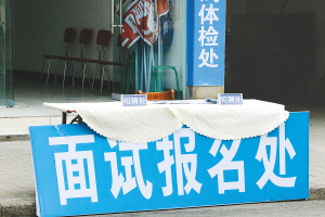 12月13日,在郑州市一个人才市场内的招聘摊点,由于没人应聘,招聘人员已经回屋休息。 进入12月以来,郑州市的一些餐饮店、宾馆等服务行业纷纷在门口贴出招聘启事,或派人到人才市场设摊招工。尽管较去年相比,底薪大多提升了二、三百元。但应聘者仍然不多,“春节工”成了服务行业的抢手货。 新华社记者 王颂 摄