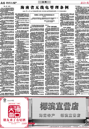 《海南省无线电管理条例》已由海南省第四届人民代表大会常务委员会第二十六次会议于2011年11月30日通过,现予公布,自2012年3月1日起施行。