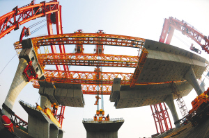 12月13日,嘉绍跨海大桥北岸水中区目前已经全面进入桥梁上部的架梁施工阶段。 嘉绍跨海大桥于2008年底动工,预计2012年底建成通车,是继杭州湾跨海大桥之后杭州湾上第二座跨海大桥。 新华社记者 徐昱 摄