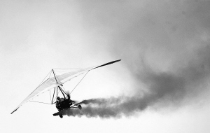 | 12月14日,在海口湾上空,一架参加首届“环海南飞行拉力赛”的动力悬挂滑翔机在进行试飞。 本报记者 宋国强 摄