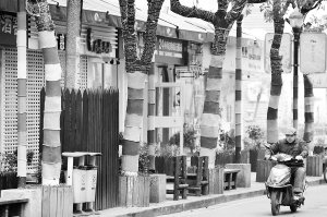 南京大树“穿毛衣”