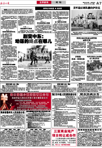 | 海南日报 世界新闻 007 2011-12-191 2011年12月19日 星期一 |