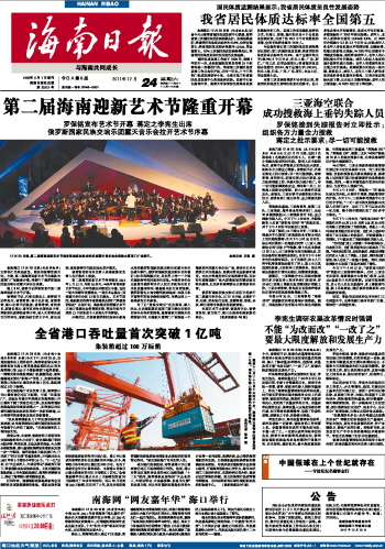 海南日报社新闻信息中心制作维护 地址:海南省海口市金盘路30号新闻大厦 发行部:0898-66810999 广告部:0898-66810888 [