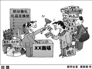 年终岁尾,不少商家为了稳定消费人群,积极推出会员积分兑换礼品活动。当消费者按照活动规定进行礼品兑换时,往往会遭遇各种问题,最终“积分”变成“鸡肋”。 新华社发 蒋跃新 作