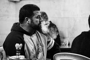 12月23日,约旦河西岸,一家水烟吧里巴勒斯坦人在抽水烟。