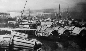 “海口位于南渡江的河口,因泥沙堆积,港口水深不足,故而轮船不得进出。轮船多在海湾中距岸二三海里处停泊,客货的载卸全赖帆船,涨潮顺风要用两个小时,反之,则要五六个小时,如此不便之港口,所以成为本岛商业中心,只是因其当雷州半岛、香港、海防等交通之要冲,且有南渡江水运便利之故也。”(《海口市》)