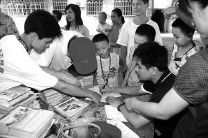 成立5年多来,爱心社有个项目一直延续着:“捐一本书,建一个爱心图书室”———通过向社会募集图书,为海南贫困地区没有课外书的小学生建图书室。林武告诉海南日报记者,为了消除学生和志愿者初相识的陌生感、增进彼此交流融合,爱心社每次捐赠图书后都会开展各式各样的游戏。