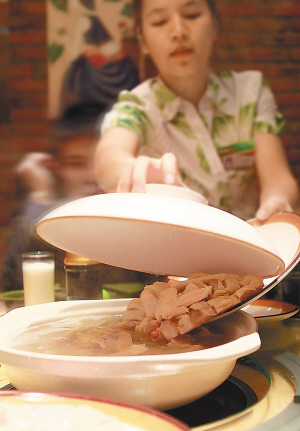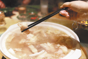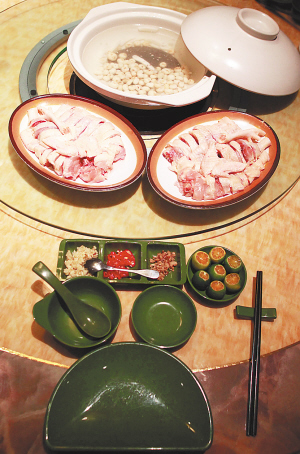 淡,颜色较浅的食物,如莲藕、淮山等。该店总经理曾海说,这主要是为了保证汤底清淡的口感和淡雅的颜色。“像番茄这样的配菜我们就不会推荐。因为番茄有酸味且颜色太深,会让汤底变酸,还会让汤变红。”