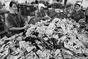 12月24日,在万宁的“湖南口味王槟榔加工厂”生产车间里,工人们正在加工、包装槟榔产品。据了解,万宁有着“中国槟榔之乡”的称号,目前全市种植槟榔超过65万亩,年产量25万吨,产值可达10亿元。秉承“一个节庆带动一个产业”的宗旨,借助2011中国海南岛欢乐节契机,万宁将举行槟榔文化节暨槟榔文化产业论坛,大力发展槟榔产业。 本报记者 张杰 摄
