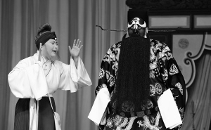 | 12月25日晚,天津市青年京剧团为第二届海南迎新艺术节献演京剧折子戏专场,图为孟广禄(右)主演的《遇皇后·打龙袍》剧照。 本报记者 王凯 摄 |