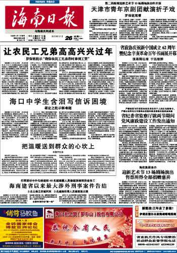| 海南日报 首版 001 2011-12-261 2011年12月26日 星期一 |