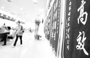 | 在省政务服务中心,办事的人们从“高效”的锦旗前走过。经过不懈的努力,我省政务工作正日益高效前行。 本报资料照片 本报记者 张杰 摄