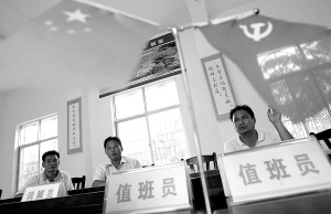 | 昌江在村(居)委会推行“两委”干部坐班制,及时有效解决农村群众的实际问题,不断提高农村基层组织的凝聚力和战斗力。图为十月田镇波兰沟村,村干部值班的情景。