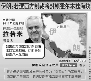伊朗第一副总统穆罕默德·礼萨·拉希米27日说,如果西方国家对伊朗石油出口实施制裁,伊朗将封锁霍尔木兹海峡。国际原油期货价格当天应声上涨。