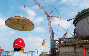 | 12月28日,昌江核电工程1号机组正在进行穹顶吊装。 本报记者 苏晓杰 摄