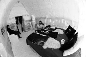 12月28日,在距罗马尼亚布加勒斯特西北300公里的弗格拉什山上,两名旅客在比莱亚湖冰造旅馆内参观房间。 比莱亚湖冰造旅馆是东欧第一家冰造旅馆,完全用冰建成。建造旅馆所用的冰取自附近的比莱亚湖水。 新华社/路透