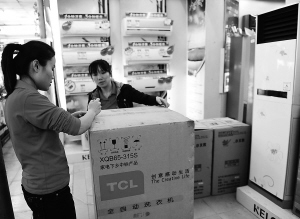 12月31日,琼海市民在电器商场购买洗衣机。实行了两年多的家电以旧换新政策于当天结束,琼海市民赶搭最后一班车。 特约记者 蒙钟德 摄