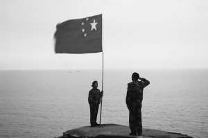———江苏灌云县开山岛民兵王继才、王仕花夫妇25年坚守海防 江苏灌云县开山岛民兵王继才、王仕花夫妇,25年如一日,在荒无人烟的海岛上守卫海防哨所,感动无数网友。新华社“中国网事”记者近日来到这个小岛,听这对夫妇讲述清苦、单调的哨所岁月,感受他们崇高而神圣的使命。图为王继才夫妇在海岛东边举行升旗仪式。 新华社发(沈鹏 摄)