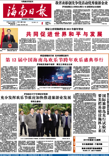 海南日报 头版 001 2012-01-011 2012年01月01日 星期日