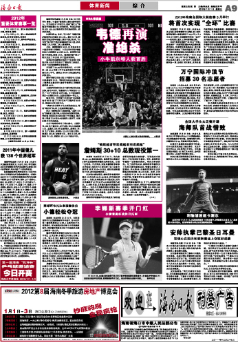海南日报 体育新闻 综 合 009 2012-01-011 2012年01月01日 星期日