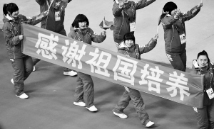 | 1月3日,长春代表团运动员手持“感谢祖国培养”的条幅入场。 新华社发 |