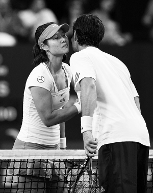霍普曼杯 李娜/吴迪告负 1月3日,在澳大利亚举行的霍普曼杯网球赛中,李娜/吴迪在混双比赛中以0:2不敌西班牙队加里奎斯/沃达斯科,中国队在小组赛中以1:2不敌西班牙队。图为李娜(左)与沃达斯在赛后握手致意。 新华社发