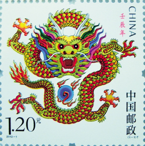 1月3日拍摄的即将发行的2012年《壬辰年》特种邮票。 中国邮政集团公司定于2012年1月5日发行《壬辰年》特种邮票1套1枚,小本票1本。2012年《壬辰年》生肖“龙”邮票在设计上基本参考了明清蟠龙的造型,是继1988年、2000年之后的第三轮生肖“龙”邮票。 新华社发(龙巍 摄)