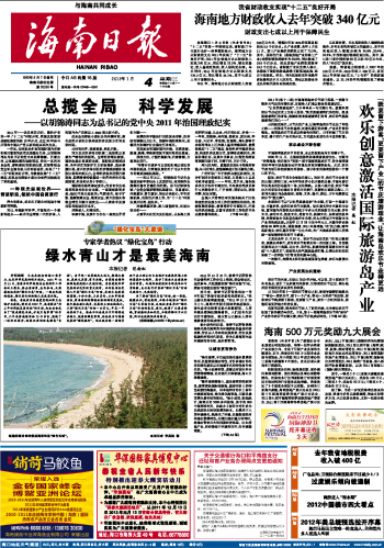 海南日报 首版 001 2012-01-041 2012年01月04日 星期三