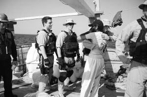 他们被索马里海盗劫持长达1个半月 这张美国海军1月6日公布的照片显示,被索马里海盗劫持的伊朗船员与解救他们的美国“约翰·斯滕尼斯”号航母战斗群“基德”号导弹驱逐舰上的美军士兵拥抱。 美国海军6日宣布,刚刚离开波斯湾的美国“约翰·斯滕尼斯”号航母战斗群5日在阿拉伯海上成功解救了13名被索马里海盗劫持的伊朗人质。船上13名人质已被劫持长达1个半月。 新华社/路透