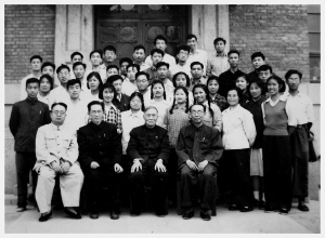 | 和北师大数学系1957届1班学生合影(前排右二为徐特立,右一为范会国)。 |