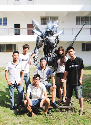 对于这个铁雕的名字,他们刚开始搞的时候并没有认真考虑。在去年11月初完成之后,学校的同学口口相传地称之为“变形金刚”。前不久,有三亚当地的媒体采访他们,他们给铁雕正式确定了名字———落笔战士。“因为我们学院位于落笔洞附近,因此得名。”6个人这样告诉记者。