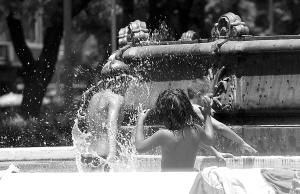 1月9日,在阿根廷首都布宜诺斯艾利斯,人们正在喷水池中嬉戏消暑。 布宜诺斯艾利斯当天的最高温度达到40摄氏度,创入夏以来的最高纪录。 (新华社发/美洲通讯社通联)