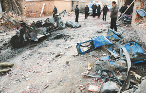 这是发生爆炸事故的现场(摄于1月10日)。 1月10日14时左右,内蒙古自治区赤峰市元宝山区发生烟花爆竹爆炸事故,造成5人死亡、8人受伤。 据介绍,当日两名赤峰市喀喇沁旗的农民驾驶拖拉机拉运一车烟花爆竹来到赤峰市元宝山区销售。14时左右,两名农民在点燃烟花爆竹试炮的过程中引发爆炸事故,造成这两名农民和另外3名围观群众当场死亡,另有8人受伤。事发后,赤峰市立即启动紧急救援,并对死者家属进行善后工作。 新华社发