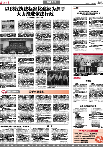 海南日报 国税专刊 005 2012-01-111 2012年01月11日 星期三